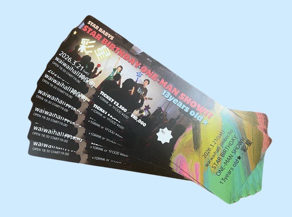 2026年3月21日waiwaihall神保町のSTAR BABYSワンマンライブのチケットです。こちらでの販売は2026年3月16日(月)まで。