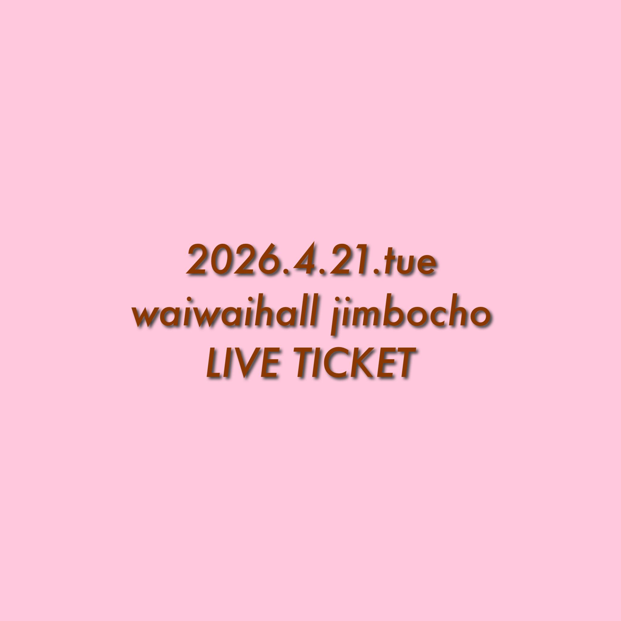 2026.4.21(火)waiwaihall神保町ライブチケットです。こちらでの販売は2026.4.14(火)までです。